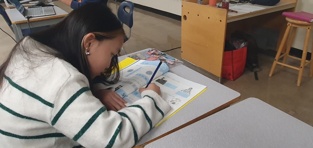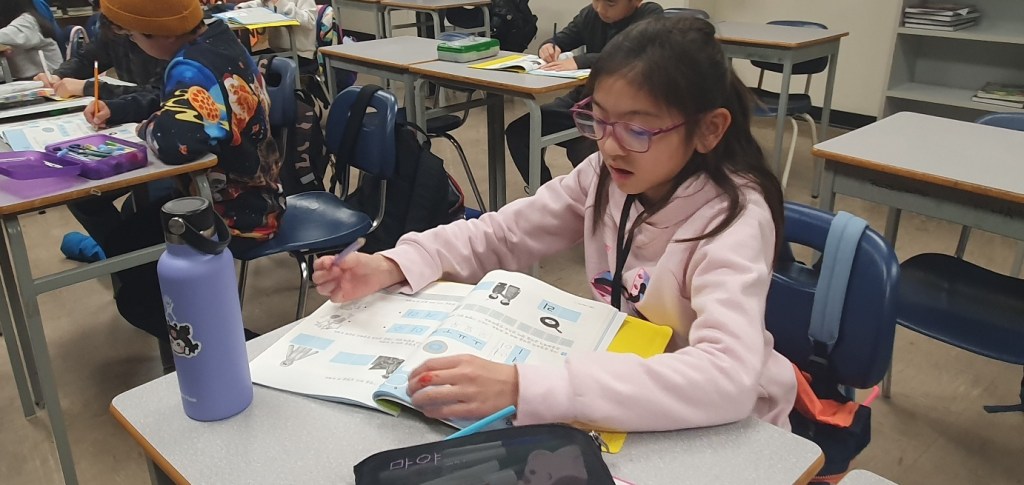 Our Uri Class 3 friends are dedicating themselves to studying Korean, carefully writing each character sincerely!