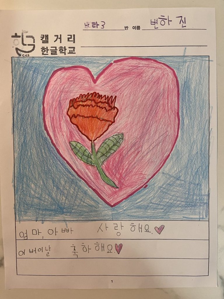 5์ ๊ฐ์ ์ ๋ฌ, ๋ถ๋ชจ๋์ ๋ํ ์ฌ๋๊ณผ ๊ฐ์ฌ, ๊ทธ๋ฆฌ๊ณ ๊ฐ์กฑ๊ณผ์ ํ๋ณตํ ์๊ฐ์ ์ฃผ์ ๋ก ๊ทธ๋ฆผ ๊ทธ๋ฆฌ๊ธฐ ์๊ฐ์ ๊ฐ์ก์ต๋๋ค. ํ๊ตญ์์ 5์์ ๊ฐ์ ์ ๋ฌ์ด๋ผ๊ณ ๋ถ๋ฅด๋ ์ด์ ๋ฅผ ๋ฐฐ์ฐ๊ณ , ๊ฐ์ฌํจ์ ํํํ๋ ํ๊ธ ๋ฌธ์ฅ์ ๋งํ๋ฉฐ ์ฐ์ตํ์ต๋๋ค. ๋์๊ฐ ์นด๋ค์ด์ ์ ์๋ฏธ๋ฅผ ๋ฐฐ์ฐ๋ฉฐ ๊ฐ์กฑ์ ์์คํจ์ ์๊ฐํด๋ณด๋ ์๊ฐ์ด์์ต๋๋ค. ๋์ ๊ฐ์กฑ์ ๋ชจ์ต, ๊ฐ์กฑ๊ณผ ํจ๊ปํด์ ๊ธฐ์ต์ ๋จ๋ ์๊ฐ, ๋ถ๋ชจ๋์ ํฅํ ์ฌ๋์ ๋ด์ ์นด๋ค์ด์ ๋ฑ, ๋๋ผ 3๋ฐ ์น๊ตฌ๋ค์ด ํํํ ๊ฐ์กฑ์ ๋ชจ์ต์ ๊ทธ๋ฆผ์ผ๋ก ๋ง๋ ๋ณด์ธ์.๐