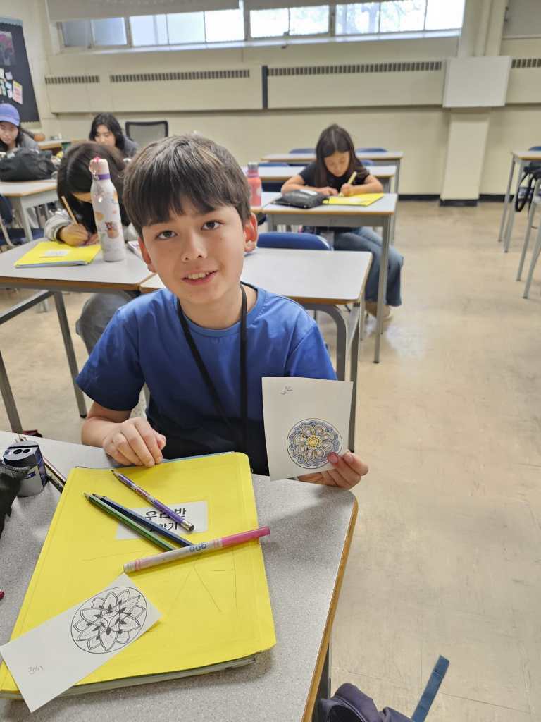 In Uri Class 3, we learned about Dancheong, the colorful traditional patterns used in Korean architecture. Students shared their own experiences of seeing Dancheong and enjoyed a creative activity by coloring their own Dancheong designs. It was a meaningful time to explore and express Korean traditional culture.