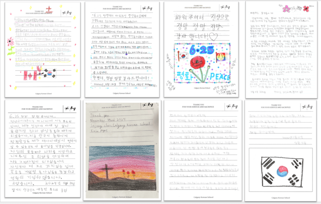 이 작품들은 세종반을 대표하여 캐나다 참전용사분들께 리멤버런스 데이에 전달되었습니다. [ * 당선자: 표소희, 장리아, 정성린, 바이혜원, 김소원 ]